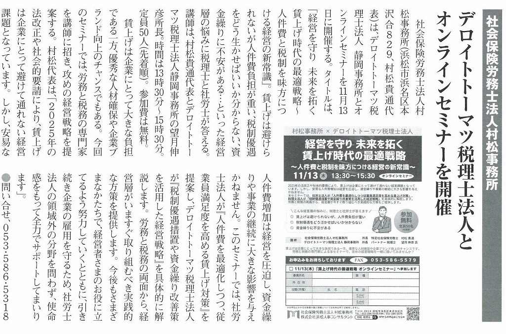 「デロイトトーマツ税理士法人とオンラインセミナーを開催」が掲載されました