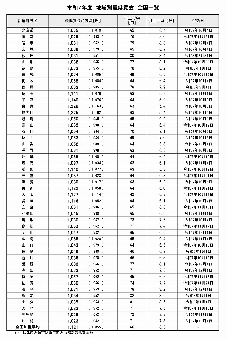 しかし、2025年度は異例のスケジュールとなっており、11月や12月から適用される県、さらに2026年1月や3月に発効となる県も出ています。