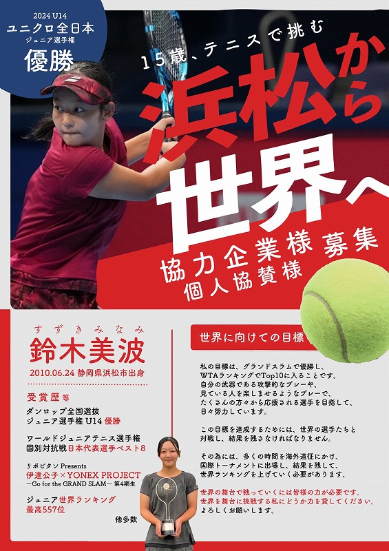 鈴木美波選手は日本屈指の選手です。地域の活性化にも繋がりますし、ぜひ浜松から世界に羽ばたいてほしいと思います🌍