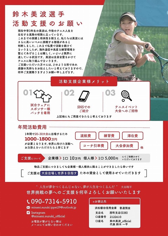 そんな鈴木美波選手が活動支援を求めていることを知りましたので、応援することに決めました💪